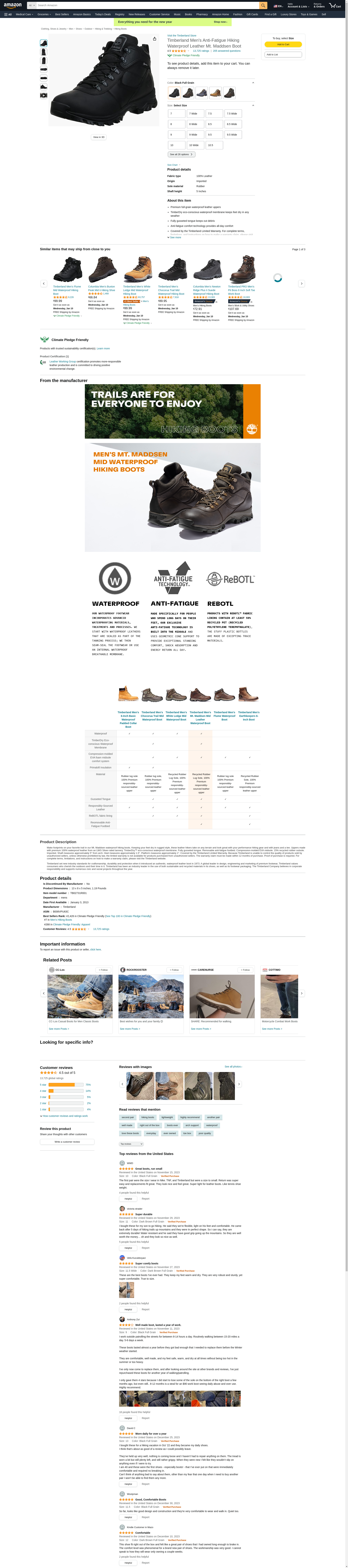 Timberland Men's Anti-Fatigue Hiking Waterproof Leather Mt. Maddsen Boot