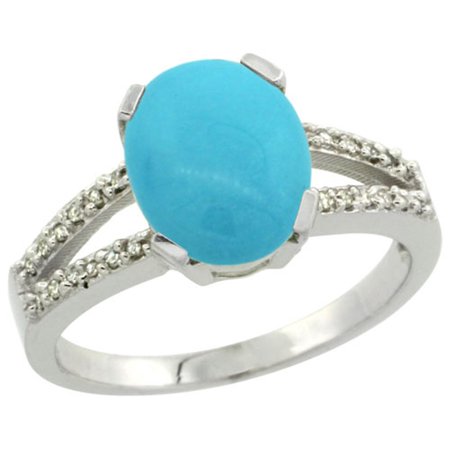 Sterling Silver Diamond Halo Sleeping Beauty Turquoise Ring Oval 10x8mm, 3/8 inch wide, sizes 5-10