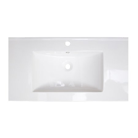 AMIM3023 <br /> <b>Features</b> <br /> <ul> <li>Shape: Rectangle</li> <li>Material: Kiln dried ceramic</li> <li>Smooth non-porous surface, prevents from discoloration and fading</li> <li>Faucet and accessories not included</li> <li>Double fired, glazed for durability and stain resistance</li> <li>Quality control approved in Canada</li> <li>Material: Ceramic</li> <li>Sink Included: Yes</li> </ul> <ul> <li>Number of Faucet Holes (White): 1</li> </ul> <ul> <li>Number of Faucet Holes (Biscuit): 3</li> </ul> <br /> <b>Dimensions</b> <br /> <ul> <li>Overall Height - Top to Bottom: 8"</li> <li>Overall Width - Side to Side: 35"</li> <li>Overall Depth - Front to Back: 20"</li> <li>Overall Product Weight: 50 lbs</li> <li>Faucet Hole: Yes</li> </ul>