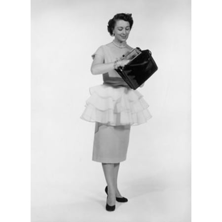Stretched Canvas Art - Young woman holding hand bag - Medium 18 x 24 inch Wall Art Decor Size.