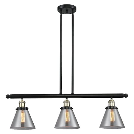 INNOVATIONS LIGHTING 213-BAB-G43-LED FRANKLIN RESTORATION LARGE CONE 3 LIGHT 40 1/4 INCH PLATED SMOKE GLASS ISLAND...