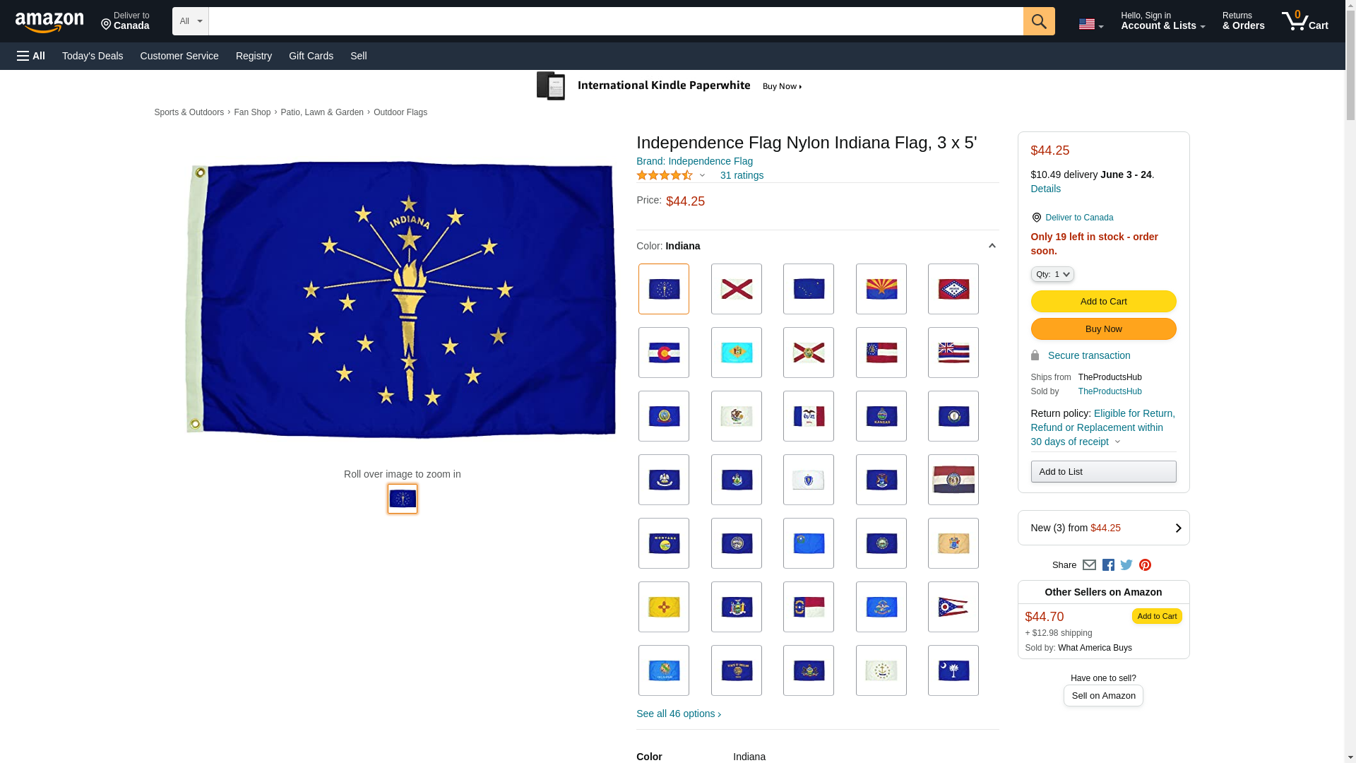 Independence Flag Nylon Indiana Flag, 3 x 5'