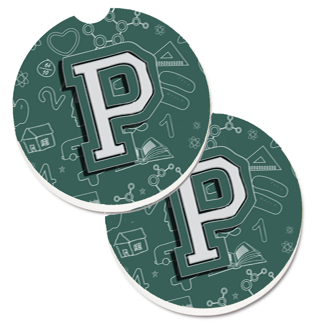 Carolines Treasures CJ2010-PCARC Letter P Back to School Initial Set of 2 Cup Holder Car Coaster