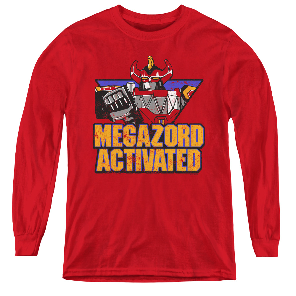Trevco PWR145-YL-2 Power Rangers & Megazord Activated Youth Long Sleeve Tee Shirt, Red - Medium