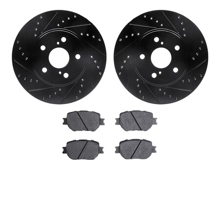 Dynamic Friction Company Front Brake Rotors Drilled and Slotted Black with 5000 Advanced Brake Pads - 8502-76075
