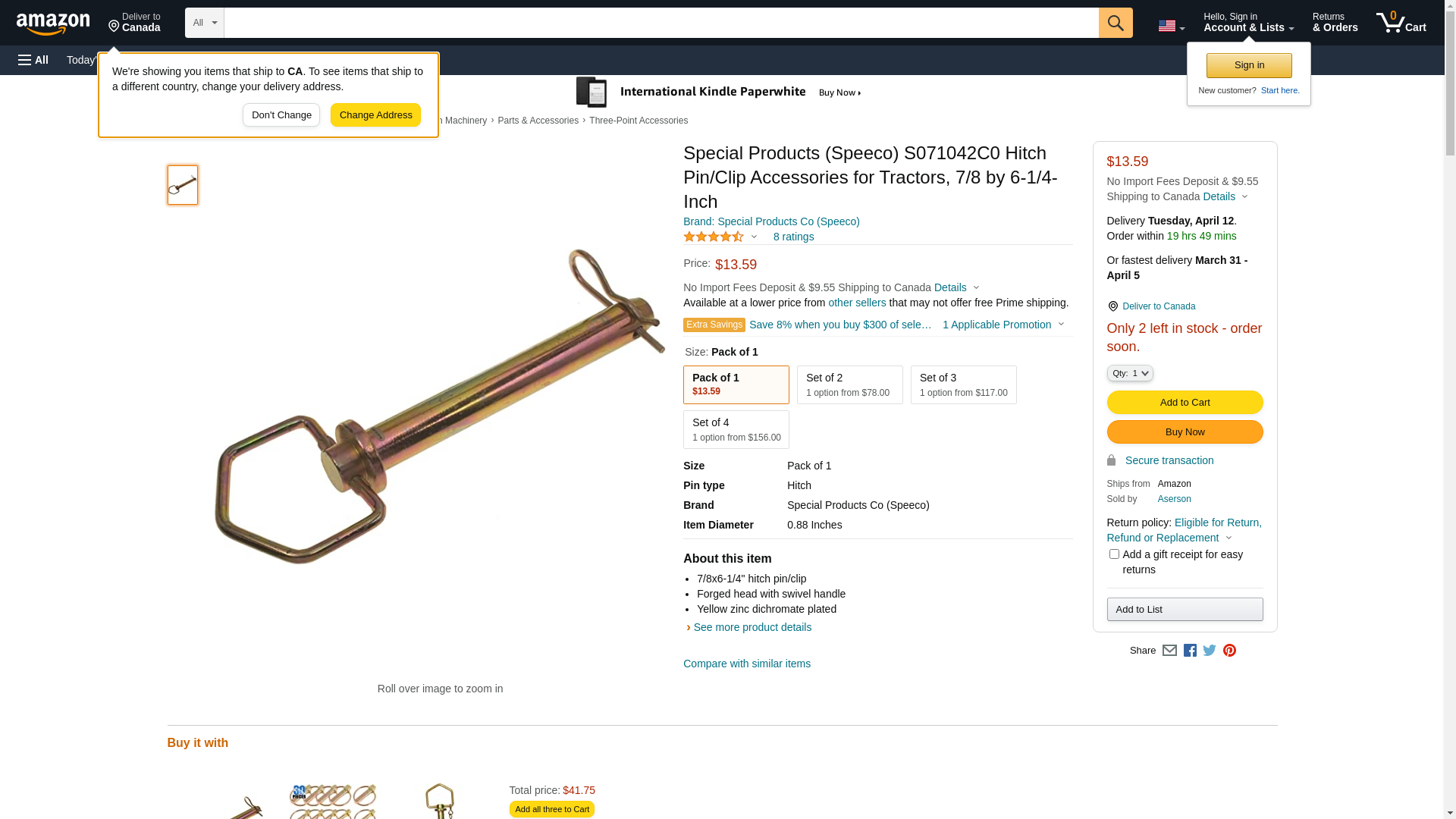 Special Products (Speeco) S071042C0 Hitch Pin/Clip Accessories for Tractors, 7/8 by 6-1/4-Inch