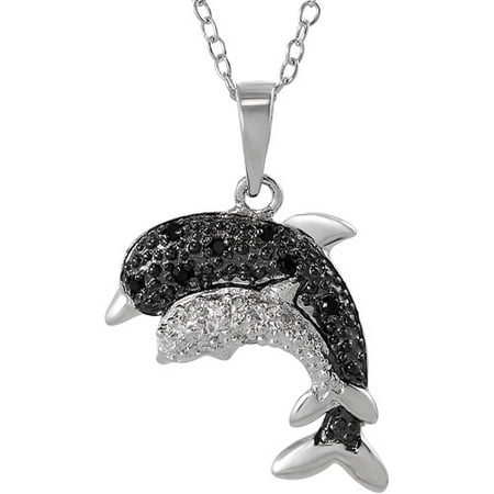 <br /> <b>Brinley Co. Black and White CZ Sterling Silver Double Dolphin Pendant, 16 with 1" Extender:</b> <ul> <li>Pave-set, round-cut CZ each measuring 1mm</li> <li>Sterling silver and rhodium over sterling silver</li> <li>High-polish finish</li> <li>17" cable chain</li> <li>Spring ring closure</li> <li>Metal weight: 2.9 g</li> <li>Dimensions: 17mm x 17.6mm</li> </ul> <p>Every piece of Walmart jewelry passes rigorous inspection at our Quality Assurance labs. So you can buy with confidence ? guaranteed. <spanclass=text2bold> <a href="http://learn.walmart.com/Beauty/Articles/Jewelry_Quality_Guarantee/20636/">Learn More</a> <br />" </spanclass=text2bold></p>