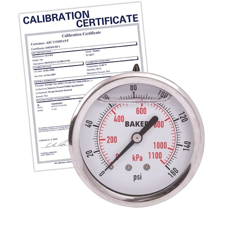 Baker AHNC-160P Pressure Gauge, 0-160 PSI,