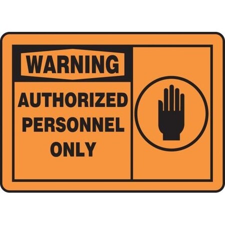 Accuform MADM317XV Adhesive Legend "Warning Authorized Personnel ONLY" Sign, 10" Height, 14" Wide, 10" Length, 0.006" Thickness, Dura-Vinyl, Black on Orange