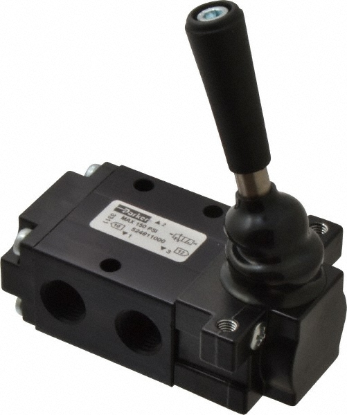 | Feature | Price For: Each Series: Directair 4 Connection: NPT Coefficient of Volume: 0.8 Item: Manual Air Control Valve Actuator/Return: Lever/Spring Overall Width: 1-1/2" Overall Length: 4" Overall Height: 4" Body Material: Aluminum Center Position: Closed Temp. Range: 32 Degrees to 175 Degrees F Air Valve Type: 3-Way, 2-Position Max. Pressure: 150 psi Pipe Size: 1/4" |