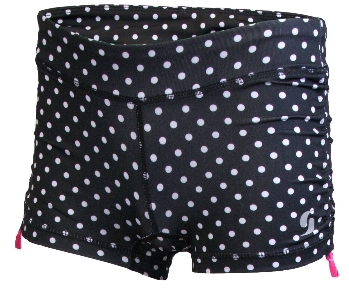 Soffe 1118G0CSXLG Girls Side Ruched Short, Black White Dot - Extra Large