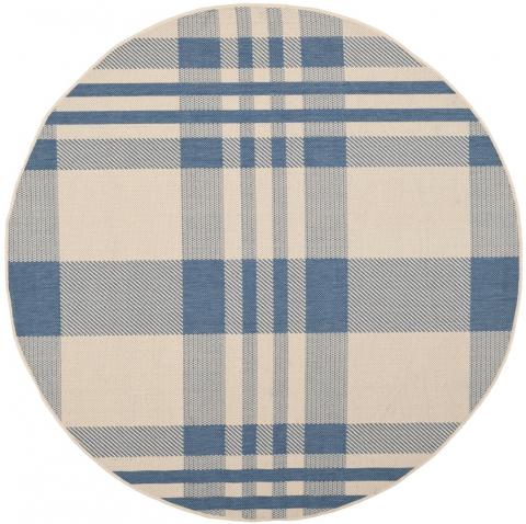 SAFAVIEH Courtyard Collection 4' x 4' Round Beige/Blue CY6201 Plaid Indoor/ Outside Waterproof Easy cleansingPatio Backyard Mudroom Area Mat