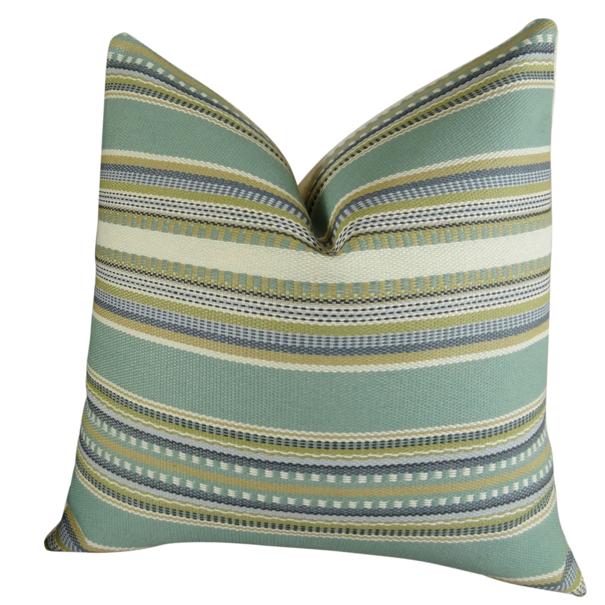 Plutus Brands Plutus Chic Stripe Aloe Handmade Throw Pillow, 12" x 20", Light Blue/Green/Cream
