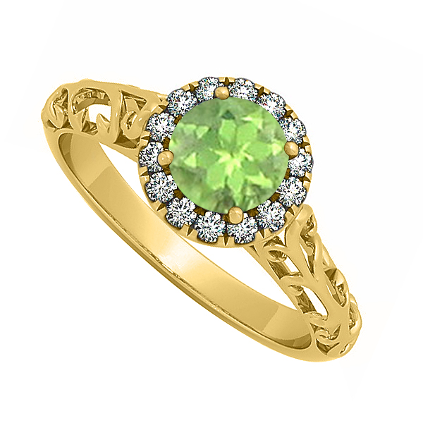 Fine Jewelry Vault UBNR50855AGVYCZPR Halo Filigree Engagement Ring With Peridot & CZ in 18K Yellow Gold Vermeil - 0.66 C