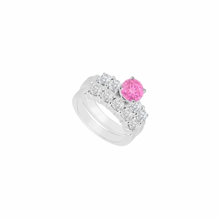 Fine Jewelry Vault UBUJS661ABAGCZPS 925 Sterling Silver Created Pink Sapphire & CZ Engagement Ring With Wedding Band,