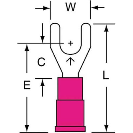 The 3M Scotchlok red non-locking butted vinyl butted fork & spade terminal is sold 1000 per case and is another quality product from 3M. The insulation length on this butted fork & spade terminal is 0.74 in. Supported wire sizes are 22 awg to 18 awg. The overall length measures 0.9 in.