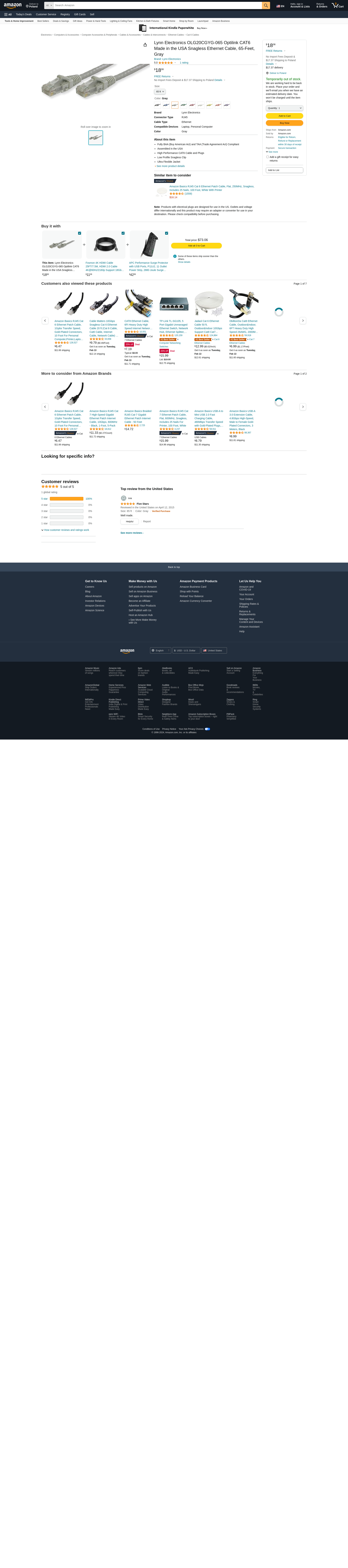 Lynn Electronics OLG20CGYG-065 Optilink CAT6 Made in the USA Snagless Ethernet Cable, 65-Feet, Gray. Fully BAA (Buy A...