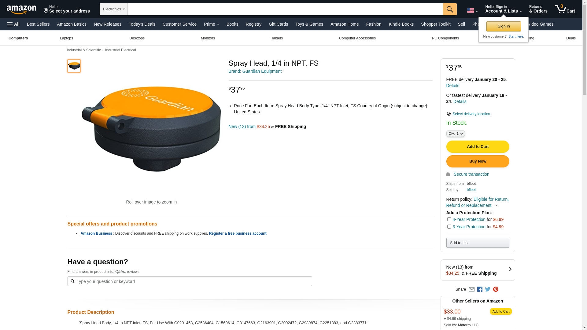 - <b>Price For:</b> Each <b>Item</b>: Spray Head Body <b>Type</b>: 1/4" NPT Inlet, FS <b>Country of Origin (subject to change)</b>: United States