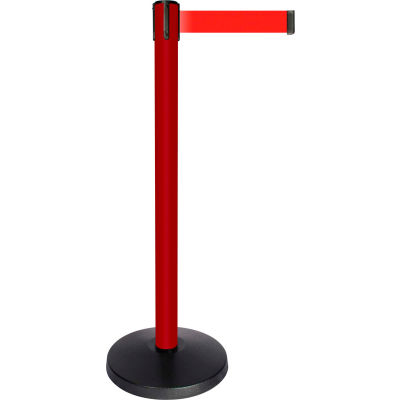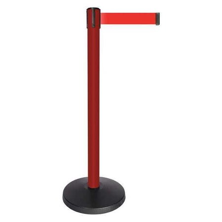 Barrier Post with Belt, Post Material ABS, Post Finish Powder Coated, Post Height 40 in, Post Dia. 2 1/2 in, Base Type Basic, Base Dia. 14 in, Base Material ABS, Base Finish Powder Coated, Number of Belts 1, Belt Length 10 ft, Belt Color Red, Belt Message None, Belt Width 2 in, Includes Universal Cassette Clip, For Use With Portable Posts, Indoor, ADA Compliance No