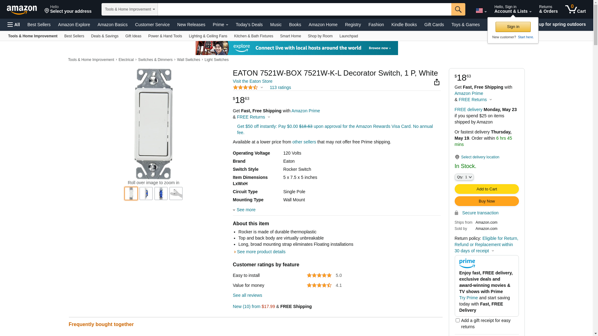 | 7521W-BOX | 1 | Cooper Wiring Orders Over $150 Usually Ship NextDay, Otherwise5-7 Days | 1 | 1 @ $16.89 |
