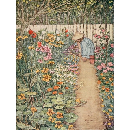Winifred Cayley-Robinson Stretched Canvas Art - The Childrens Book of Gardening 1909 Herbaceous Border - Medium 18 x 24 inch Wall Art Decor Size.