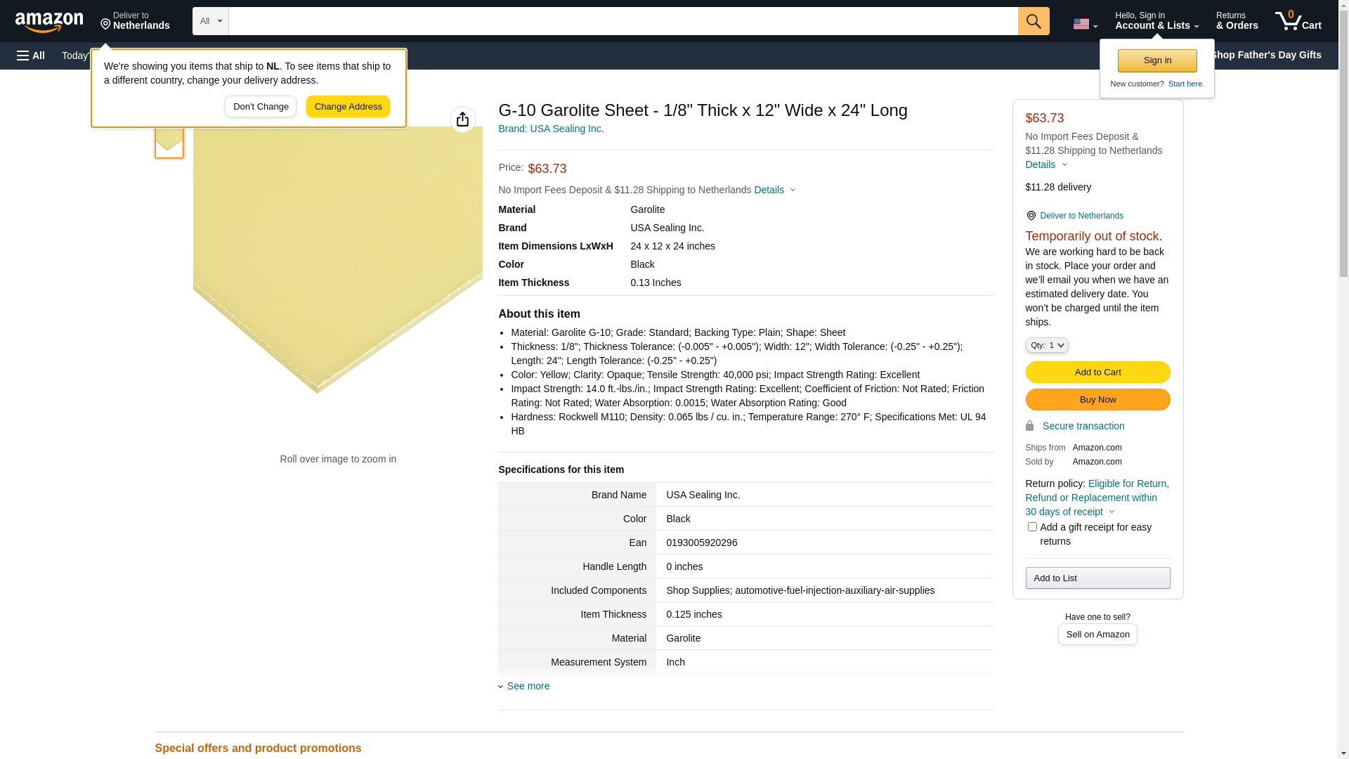 - Material: Garolite G-10; Grade: Standard; Backing Type: Plain; Shape: Sheet
