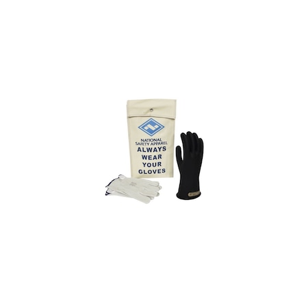 National Safety Apparel Class 00 Black Rubber Voltage Insulating Glove Kit with Leather Protectors, Max. Use Voltage 500V AC/ 750V DC (KITGC0011)