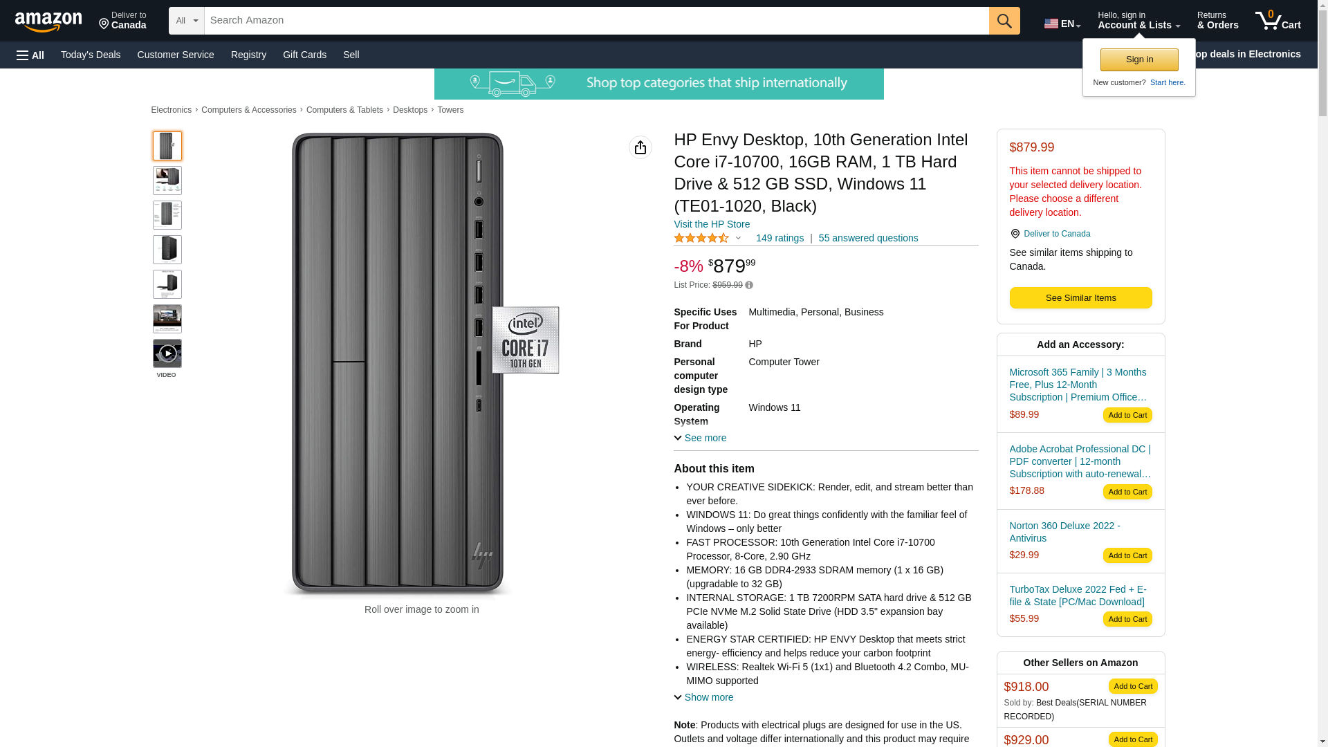 HP Envy Desktop, 10th Generation Intel Core i7-10700, 16GB RAM, 1 TB Hard Drive & 512 GB SSD, Windows 11 (TE01-1020, Black)