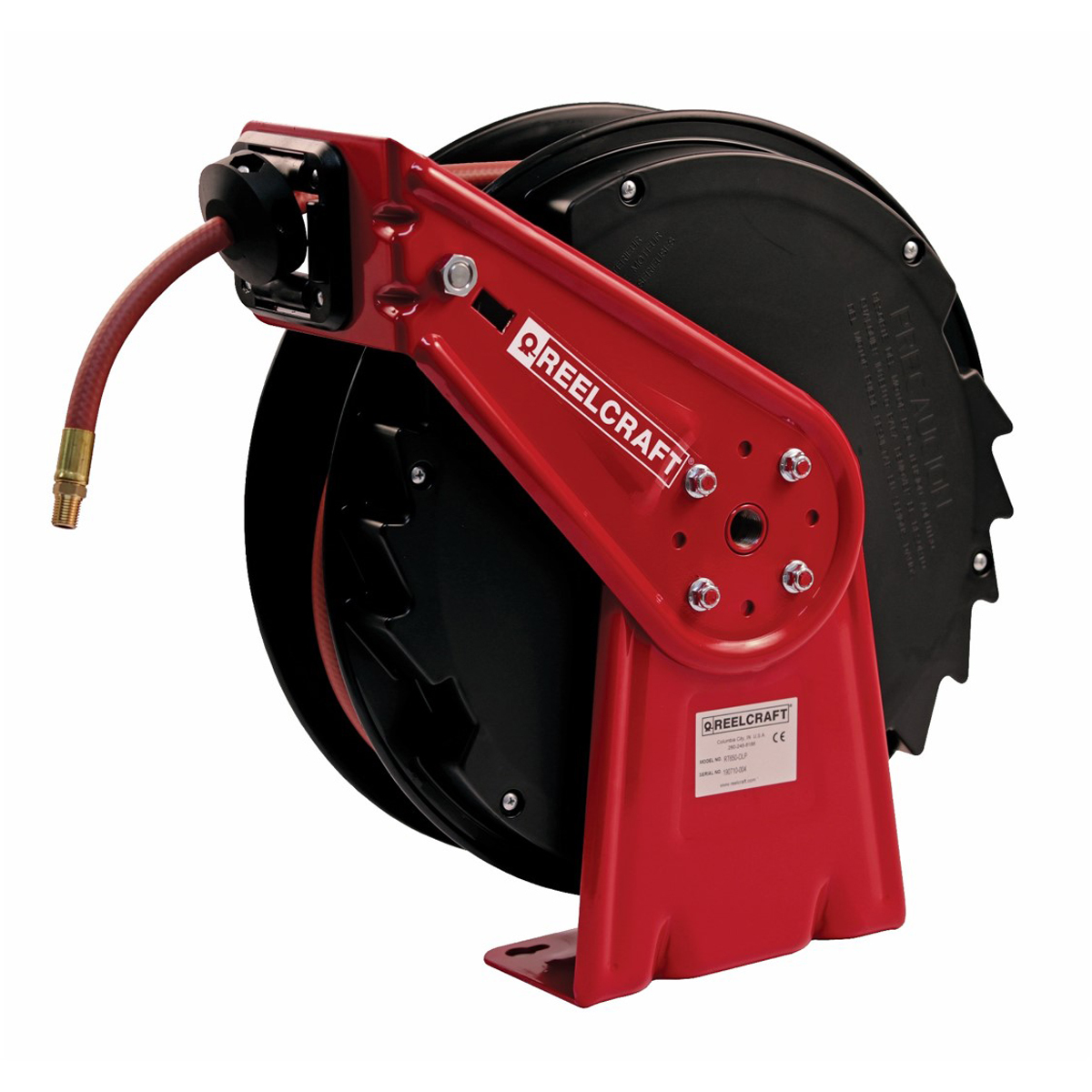 REELCRAFT ReelTek Light Industrial Air/Water/Oil Reels are ideal for less demanding industrial applications. Corrosion-resistant plastic housing with powder coated steel components. Ratchet system is on outside for easy maintenance.