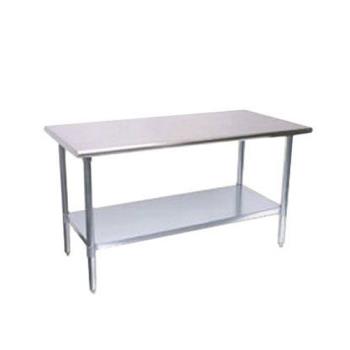 Work Table, 24" W x 96" L, 18/304 stainless steel flat top w/turned down edges, with adjustable stainless steel undershelf & legs with adjustable ABS bullet feet, NSF approved