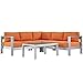 Modway Shore 4-Piece Aluminum Outdoor Patio Sectional Sofa Set in Silver Orange