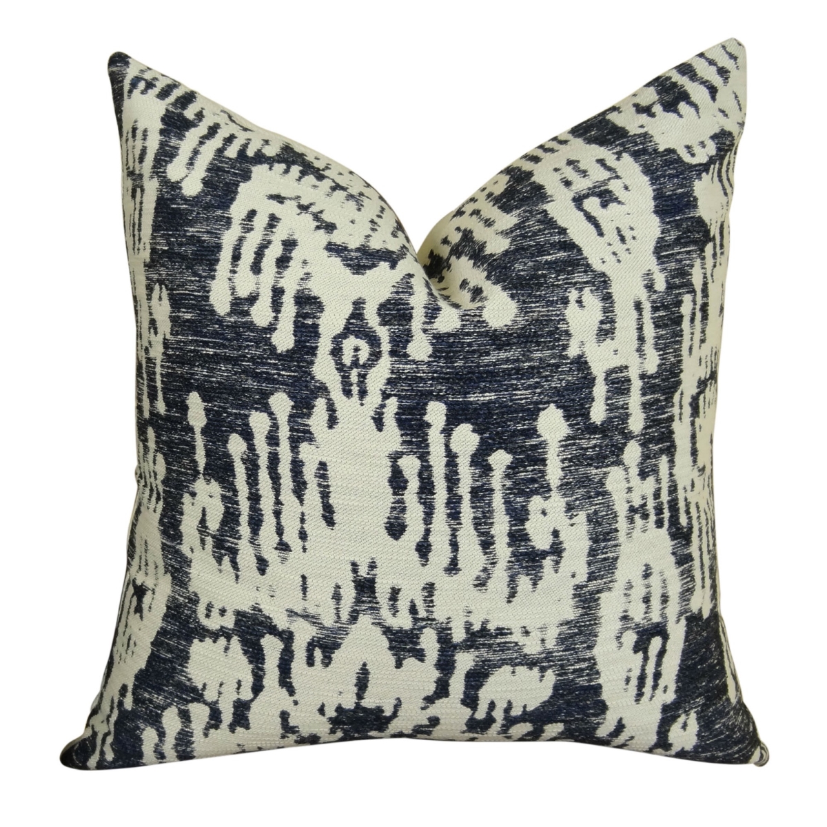 Plutus PB11386-2026-SP Painted Ikat Handmade Throw Pillow, Navy & Cream - 20 x 26 in.