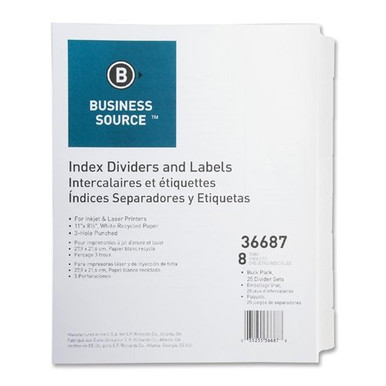 Buy Business Source BSN36687 As low as $35.19 in bulk In stock Business Source Punched Laser Index Divider - Blank - 8.50" X 11" - 25 / Box - White Divider -