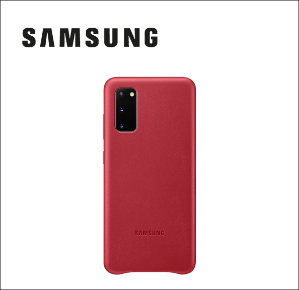 Samsung Leather Cover EF-VG980 Back cover for cell phone - aluminum, leather - red - for Galaxy S20, S20 5G