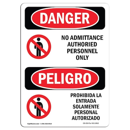 OSHA Danger, No Admittance Authorized Only Bilingual, 24in X 18in Decal