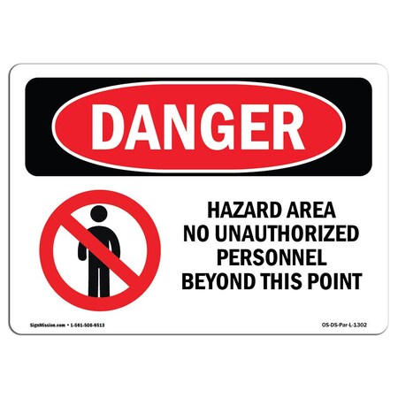 OSHA Danger, Hazard Area No Unauthorized Personnel, 18in X 12in Rigid Plastic