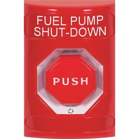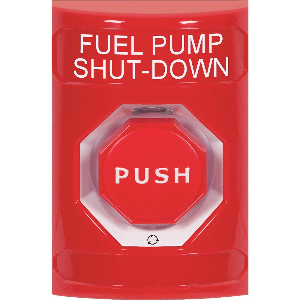 'Fuel Pump Shutdown Push Button, Type Turn-To-Reset, Switch Action Latching, Material Polycarbonate, Finish Painted, Depth 2-7/8 In., Height 4-7/8 In., Width 3-1/4 In., Button Color Red, Color Red, Button Dia. 1-1/2 In., Rating 10A @ 125 or 250VAC, 6A @ 30VDC, Input Voltage 125 to 250VAC, 30VDC, Output SPDT Relay, Amps AC 10A @125 or 250VAC, Operating Temp. -40 Degrees to 250 Degrees F, Event Audit Trail No, Keypad No, Cylinder No, Standards UL, cUL, ADA'