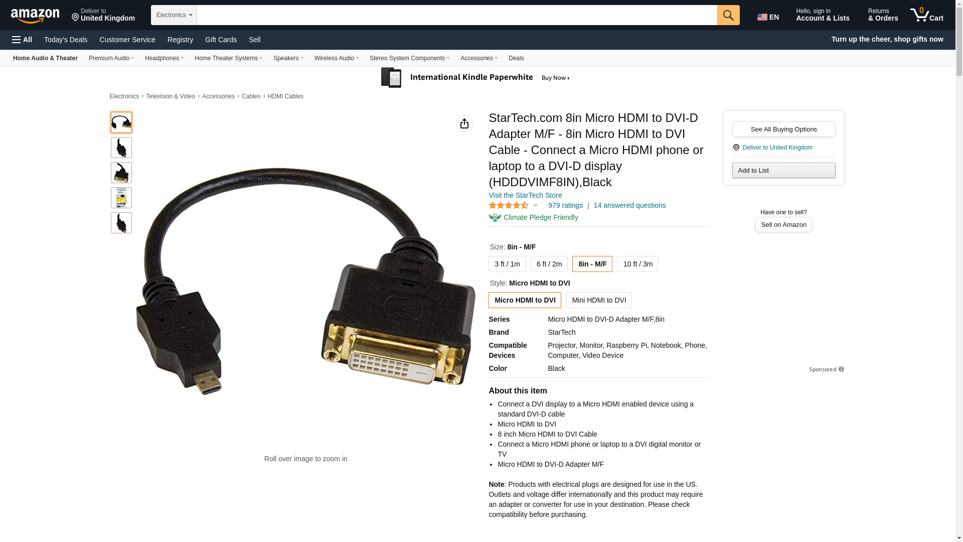 StarTech.com 8in Micro HDMI to DVI-D Adapter M/F - 8in Micro HDMI to DVI Cable - Connect a Micro HDMI phone or laptop to a DVI-D display (HDDDVIMF8IN),Black