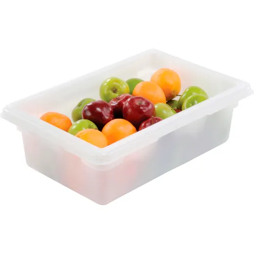 These industrial grade plastic storage boxes are perfect for storage and transport applications and are ideal for food services uses. They meet NSF Standard #2, USDA Meat and Poultry standards and are FDA and HACCP compliant. All styles are dishwasher and freezer safe, feature tight-fitting lids and labeling panels to ensure freshness. Sizes designed to be compatible with industry standard shelf and counter dimensions. Lids sold separately.