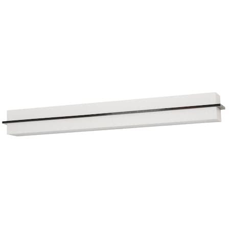 - Solid wood accent bars grace this contemporary LED Vanity. Features LumaFuse laminated fabric/acrylic shade that is durable and easy to clean. White bottom and top acrylic diffuser disperses the light. Available in two finishes and three sizes.