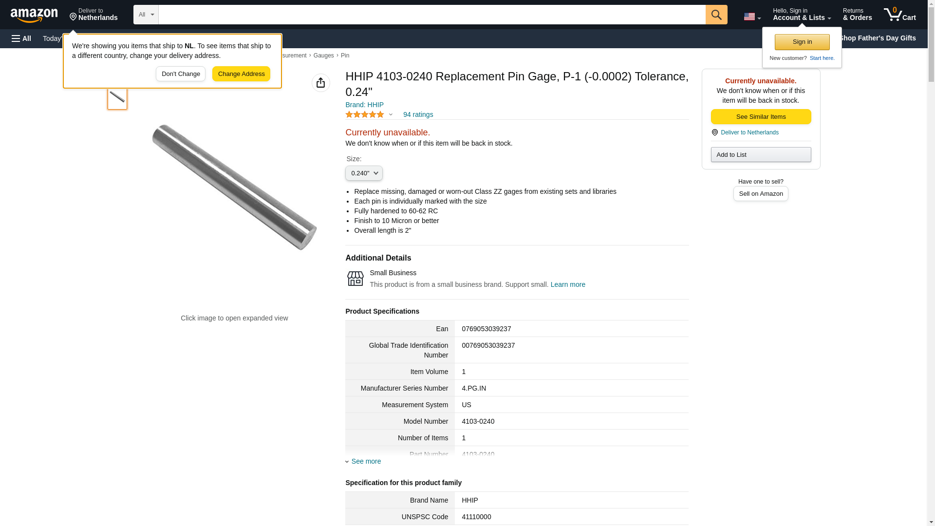 HHIP 4103-0240 Replacement Pin Gage, P-1 (-0.0002) Tolerance, 0.24"