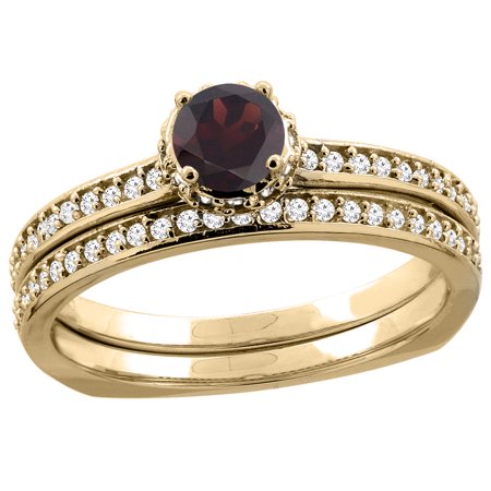 10K Yellow Gold Diamond Natural Garnet 2-pc Bridal Ring Set Round 4mm, sizes 5 - 10