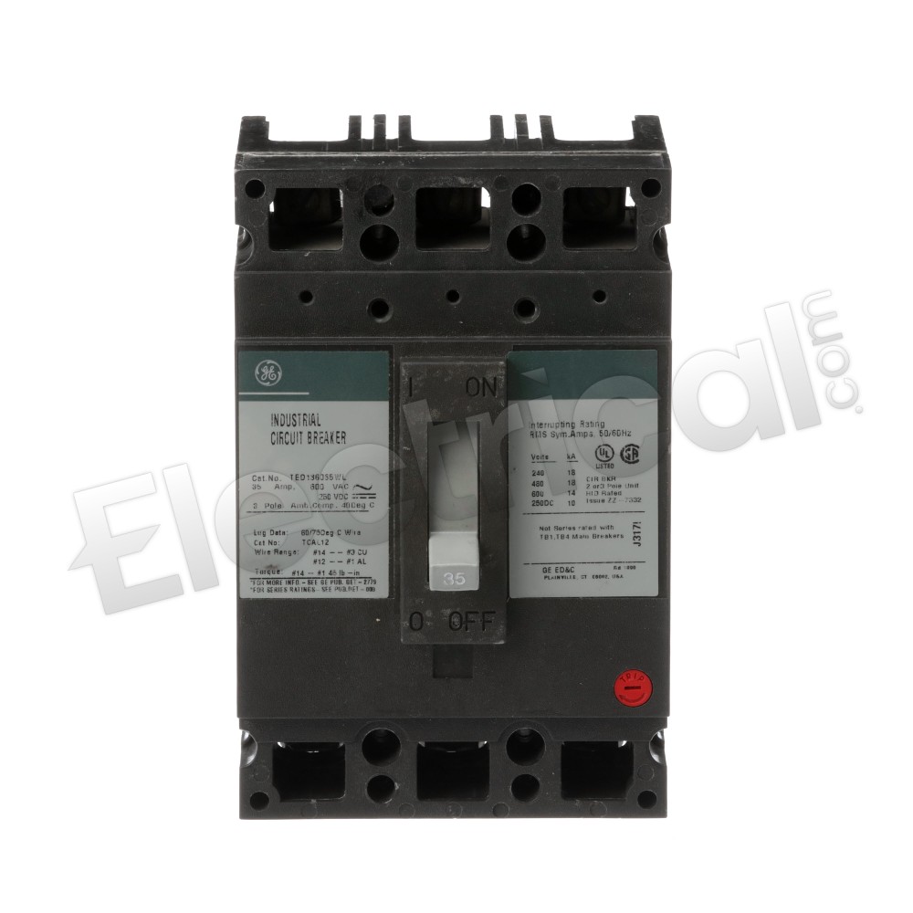 - GE TED136035WL Circuit Breaker,35A,3P,600VAC,TED