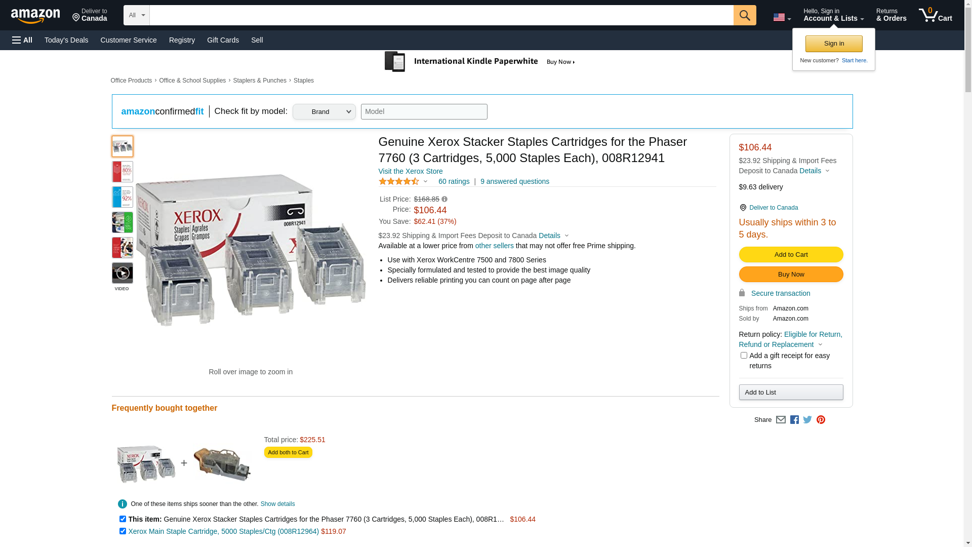 Genuine Xerox Stacker Staples Cartridges for the Phaser 7760 (3 Cartridges, 5,000 Staples Each), 008R12941