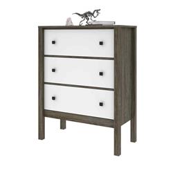 Bestar Capella 39W 3-Drawer Dresser in Walnut Grey & White
