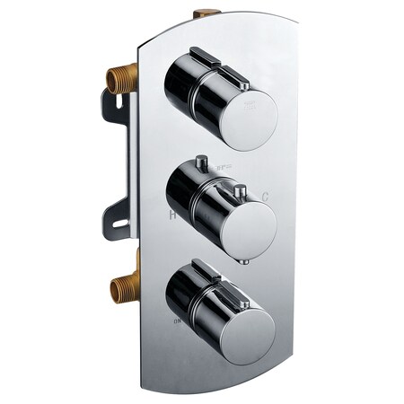 AB3901-PC Round 2 Way Thermostatic Shower Mixer with Brass, Round Knobs, Sleek Modern Design, User-Friendly Installation, UPC Certification and Diverter Knob in Polished Chrome