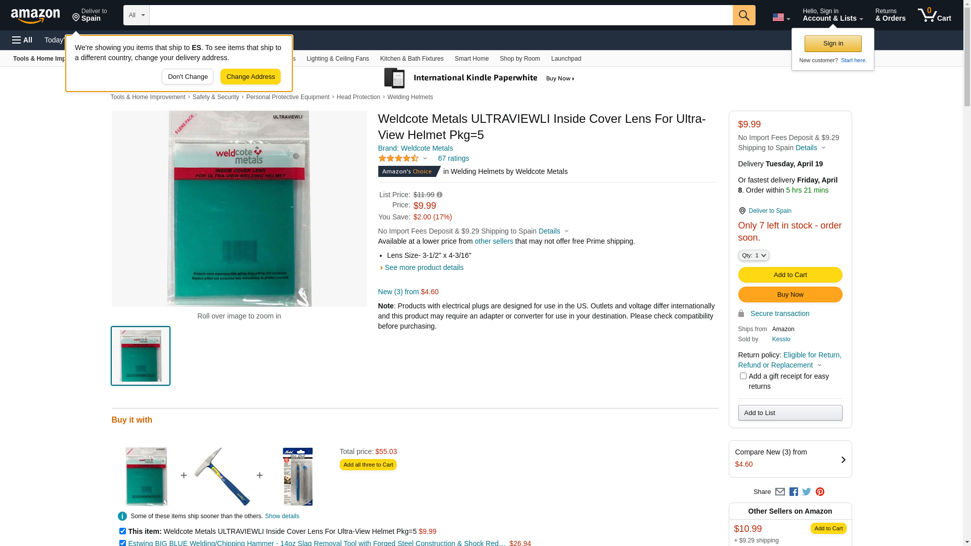 Weldcote Metals ULTRAVIEWLI Inside Cover Lens For Ultra-View Helmet Pkg=5