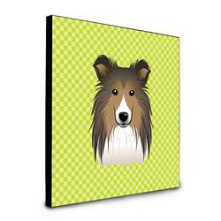 Carolines Treasures BB1304UP88 8 x 8 x 0.625 in. Checkerboard Lime Green Sheltie Artwork Panel Wall Decor
