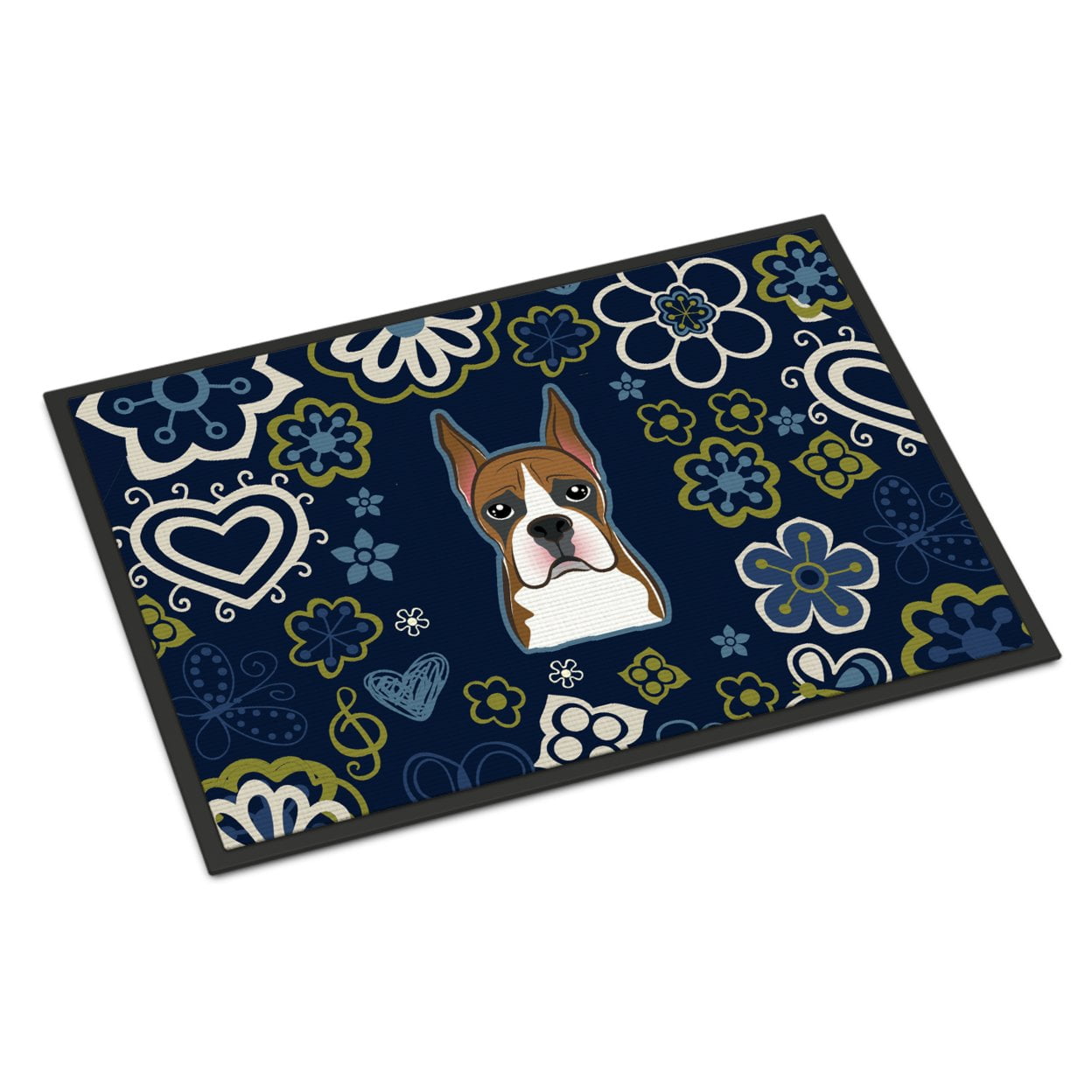 Caroline's Treasures BB5074JMAT Blue Flowers Boxer Door Mat, Indoor Rug or Outdoor Welcome Mat 24x36 Doormat, 36" L x 24" W, Multicolor