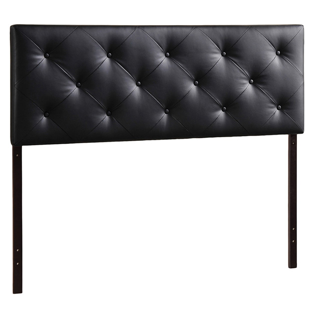 Baxton BBT6431-Black-HB-Queen Baltimore Queen Headboard in Tufted Black Leatherette